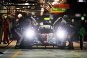 Dans la nuit, peu après la mi-course, la Toyota N.7 de tête rentre dans son garage ce qui permet à Gustavo Menezes de remonter deuxième au volant de la N.1 et à Romain Dumas de se classer troisième sur la N.3.