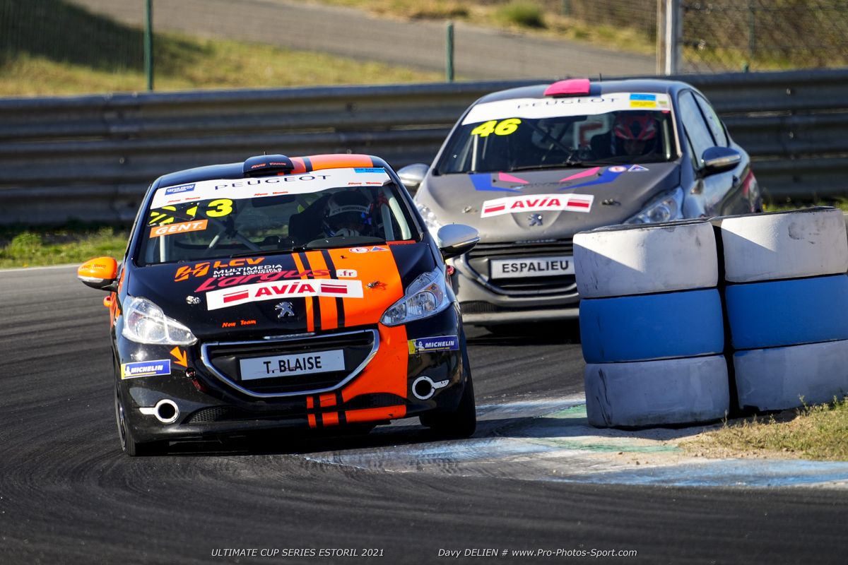 dans cette catégorie. Entête, le Suisse qui est aussi leader du championnat, s’échappe alors que la bataille fait rage derrière lui. Bernard Delhez se montre de plus en plus pressant sur Gilles Colombani, les deux Renault sont portière contre portière dans le premier virage. Le contact est inévitable et la Renault de Bernard Delhez part en tête-à-queue quelques minutes après le départ. Malgré quelques dommages sur chacune des deux Renault, les pilotes poursuivent leur course. Marc Waechter s’en est quant à lui allé chercher un premier succès au Portugal, qui lui permettra d’aborder la dernière course dans les meilleures dispositions dans sa quête du titre. Gilles Colombani et Bernard Delhez suivent dans la hiérarchie et sur le podium GT Classe 3A. Jean-Christophe David (BHK) l’emporte en Porsche Cup, devant l’Aston Martin Vantage de PROsport Racing, triple vainqueur en GT Classe 5A, tandis que les honneurs en 308 Cup reviennent à Sébastien Thome, profitant du forfait technique de Jimmy Clairet dans cette catégorie.