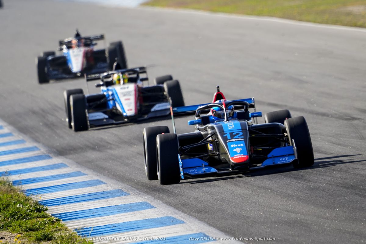 Comme lors de la première course, Laurens van Hoepen s’est hissé en première position sur la grille de départ de cette deuxième course du week-end portugais. Le pilote de la F3R n°13 du Graff est rejoint par Nicolas Prost et la F3R n°12 (CMR) sur la première, tandis que les deux autres pilotes du Graff, Théo Vaucher et Eric Trouillet se partagent la deuxième ligne. A l’extinction des feux, Nico Prost décolle le mieux de son emplacement pour se porter à la hauteur du poleman. La lutte est musclée entre les deux hommes dans le premier virage, Nicolas Prost s’infiltre à l’intérieur, ne lâche pas et contraint Laurens van Hoepen à sortir large suite à un léger contact et chute en 3e position, derrière Théo Vaucher, désormais 2e derrière Prost. Les débats sont également musclés dans le peloton, en FR2.0, et les premiers virages font du grabuge. Max Bortolami est resté sur le carreau, de l’huile s’est répandue sur la piste et la direction de course a donc décidé de la neutralisé, d’abord par une Safety Car, puis par un drapeau rouge. Les monoplaces encore en lice se repositionnent alors sur la grille, aux mêmes emplacements que lors du départ. Prost perd ainsi l’avantage de son excellent départ, au profit de van Hoepen qui récupère la première place. En plus de l’incident dans le virage 3, un départ de feu s’est déclaré sur la FR2.0 de Franck Seemann, alors leader de la catégorie. La voiture a dû être évacuée et les résidus d’extincteur ont dû être nettoyés. Après de longues minutes d’attente, le départ est donné sous Safety Car qui s’efface à la fin de ce tour. Les hostilités reprennent pour 16 minutes, sous l’impulsion du poleman néerlandais qui parvient à garder Prost à bonne distance. Malgré une petite erreur, van Hoepen a conservé l’avantage pour remporter la deuxième course du week-end, avec plus de 6 secondes d’avance sur le pilote CMR, assuré du titre F3R 2021 en Ultimate Cup Series. Théo Vaucher complète le podium pour le compte du Graff. C’est une double victoire pour l’écurie française qui s’impose également en Gentleman, avec Eric Trouillet qui s’est bien battu avec son équipier Luis Sanjuan. Profitant des déboires de Franck Seemann, Shannon Lugassy a mené la FR2.0 #55 de CMR sur la plus haute marche du podium de cette catégorie.