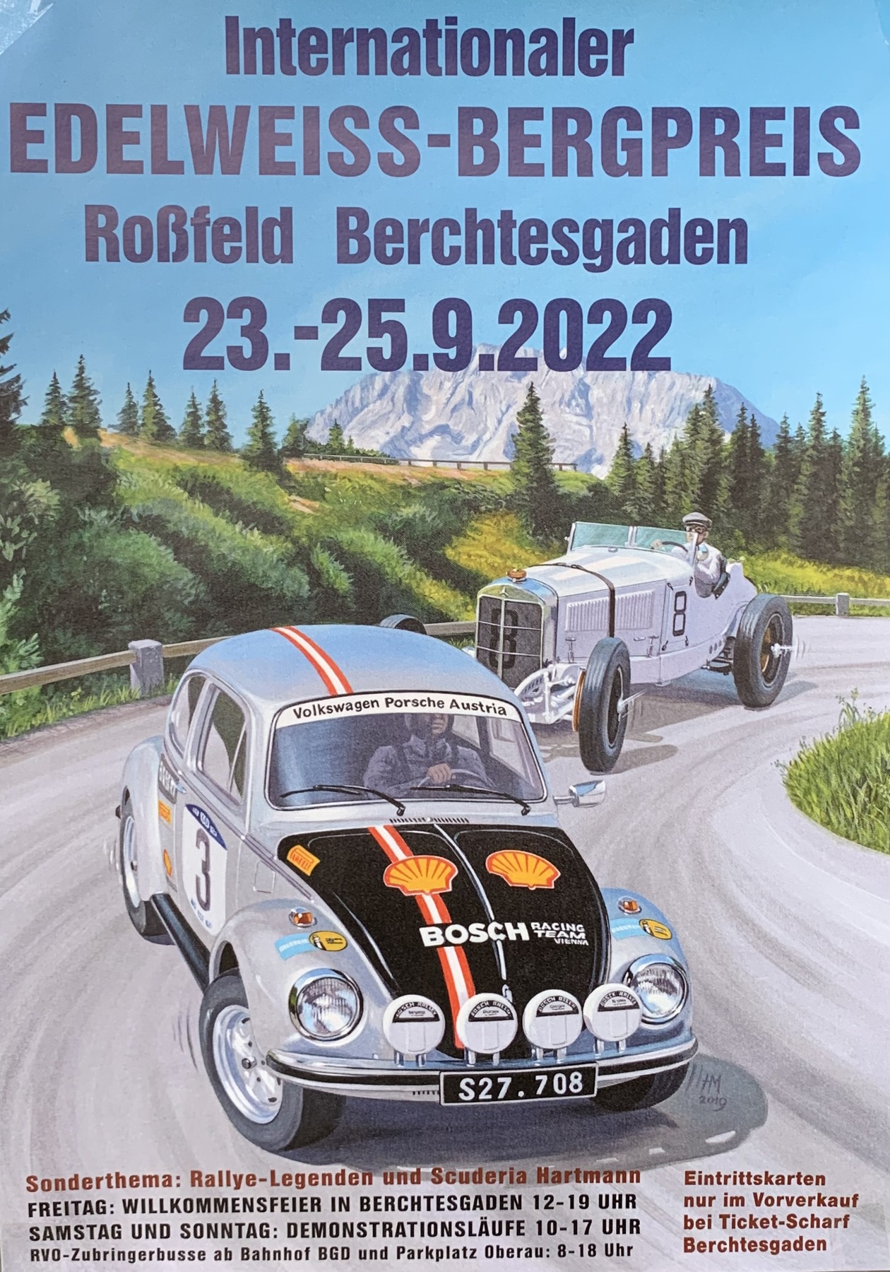 « Souhaitez-vous participer à la course de côte de Rossfeld en Bavière ? » C’est par cette question, posée par Karin Schuler, du service de presse de Volkswagen Suisse, que tout a commencé. Étant donné que cette manifestation a vu briller de nombreux pilotes suisses, de Walter Brun à Peter Schetty, en passant par Herbert Müller, Karl Foitek, Urs Hauenstein et Heini Walter, pour n’en citer que quelques-uns, nous avons immédiatement répondu oui. En outre, les organisateurs de l’Edelweiss Bergpreis Rossfeld-Berchtesgaden étaient toujours présents au salon Retro Classics à Stuttgart et le programme de leur manifestation, très complet, m’avait donné envie depuis longtemps d’assister à leur épreuve.