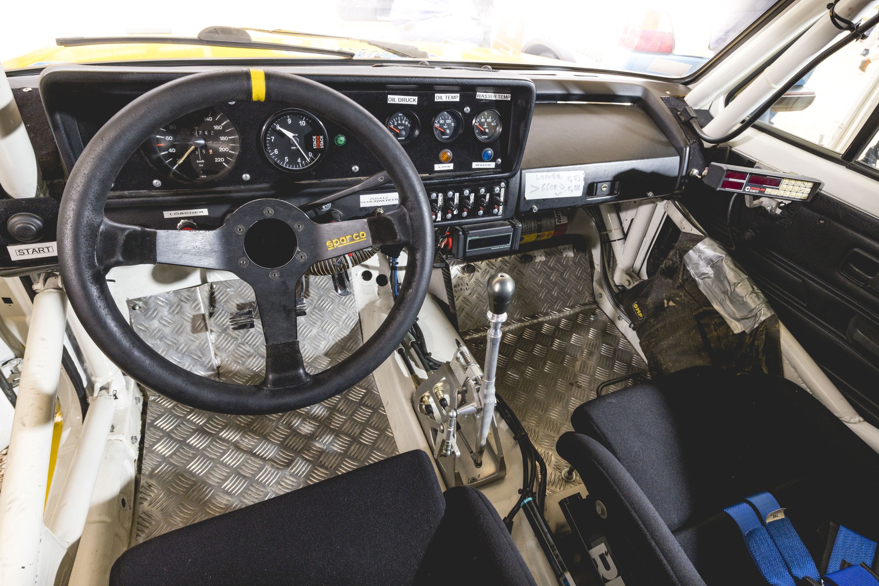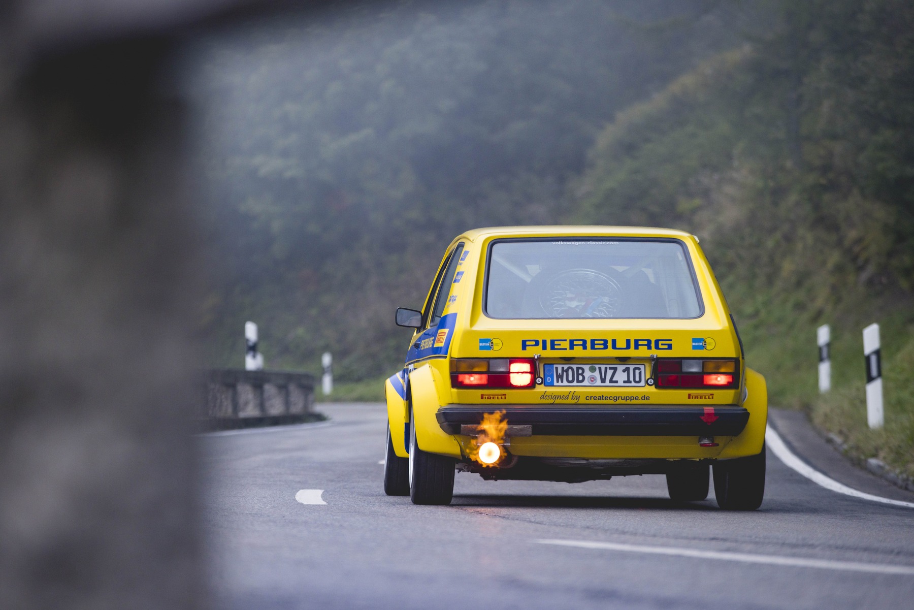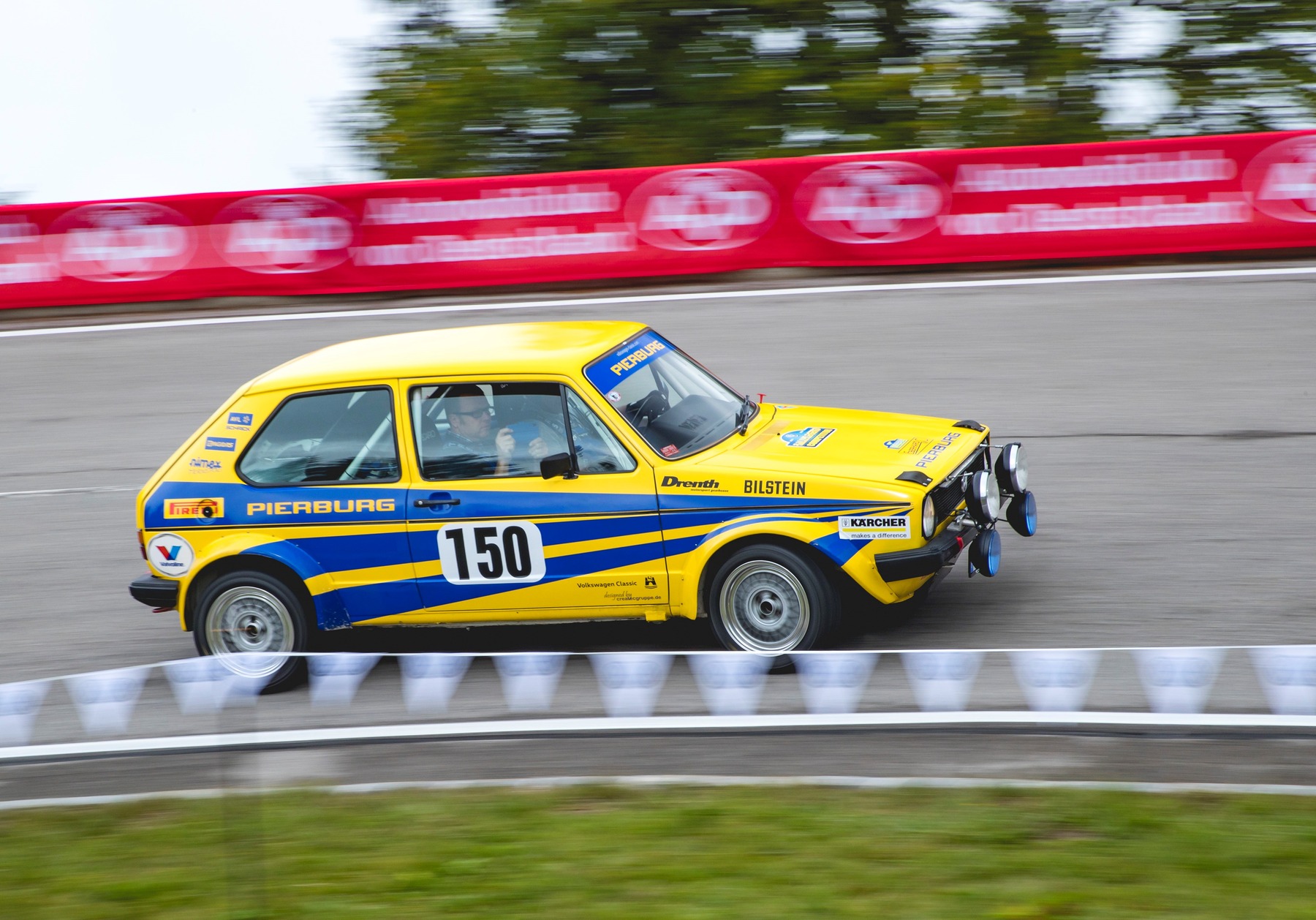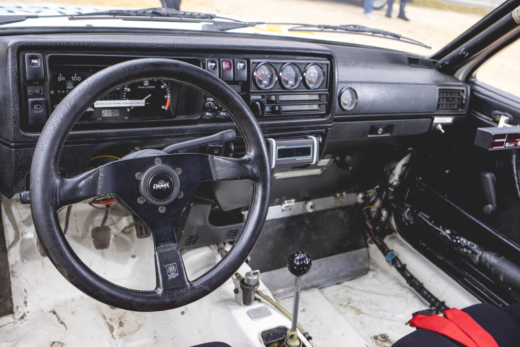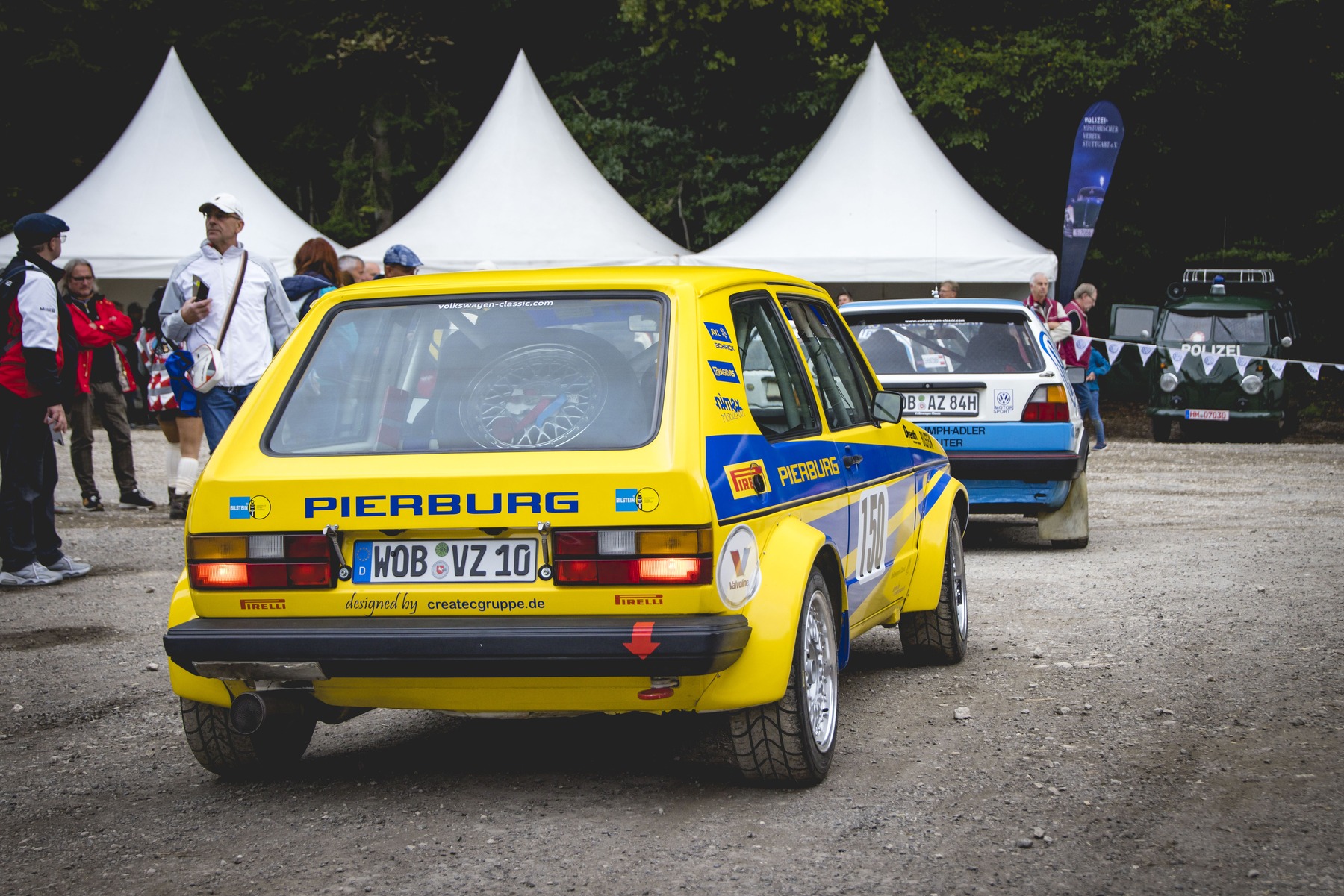 Pour terminer en beauté le second et dernier jour de course, Volkswagen Classic me confie une véritable bête de course, à savoir la réplique de la VW Golf GTI Pierburg. Si ses couleurs jaune et bleu évoquent la Golf GTI 8 soupapes que Per Eklund avait menée à la victoire dans le groupe 2 et à la 5e place du classement général du Rallye Monte-Carlo de 1980, la mécanique est en revanche celle de la Golf GTI 16 soupapes groupe 4 avec laquelle le duo Alfons Stock-Paul Schmuck a remporté le championnat d’Allemagne des rallyes en 1981. Comme le moteur 16 soupapes n’avait pas été produit à l’époque en quantité suffisante pour que cette Golf I soit homologuée en groupe 2, elle avait été inscrite en groupe 4, catégorie qui offrait par ailleurs davantage de liberté au niveau de la préparation. Du coup, cette GTI que j’ai eu le privilège de piloter à la course de côte de Rossfeld était une véritable bombinette. Jugez-en plutôt: 215 ch, 728 kg et de 0 à 100 km/h en seulement 6,6 secondes! Pas mal du tout pour une voiture de plus de 40 ans!