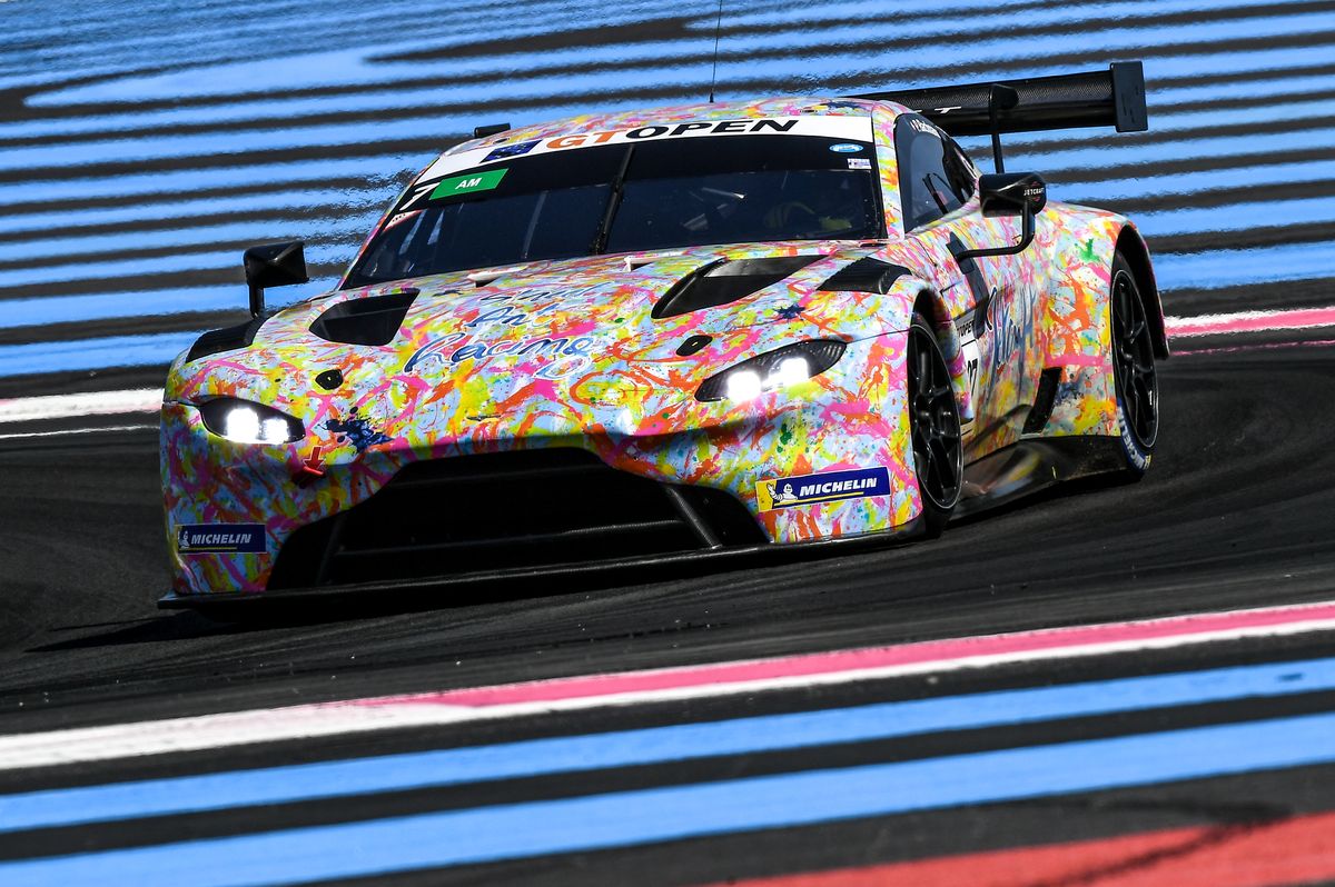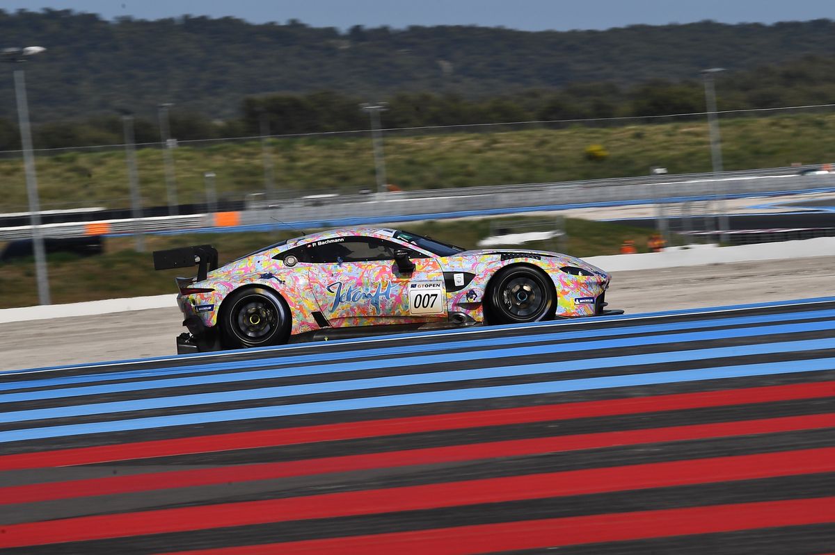 Art Car décorée par Christophe de Fierlant, l’Aston Martin Vantage AMR GT3 #007 n’est pas passée inaperçue dans le peloton de l’International GT Open. Son look a fait sensation et elle fut la cible des caméras et des photographes. À son volant, Pascal Bachmann évoluait en solo pour maximiser le temps de piste et ainsi accélérer son apprentissage de la voiture. En signant un 4e chrono en Am, à moins d’une seconde de la pole position de la catégorie, le Suisse a très bien entamé son week-end lors de la première séance qualificative. En course, il a davantage souffert en roulant pour la première fois aussi longtemps.