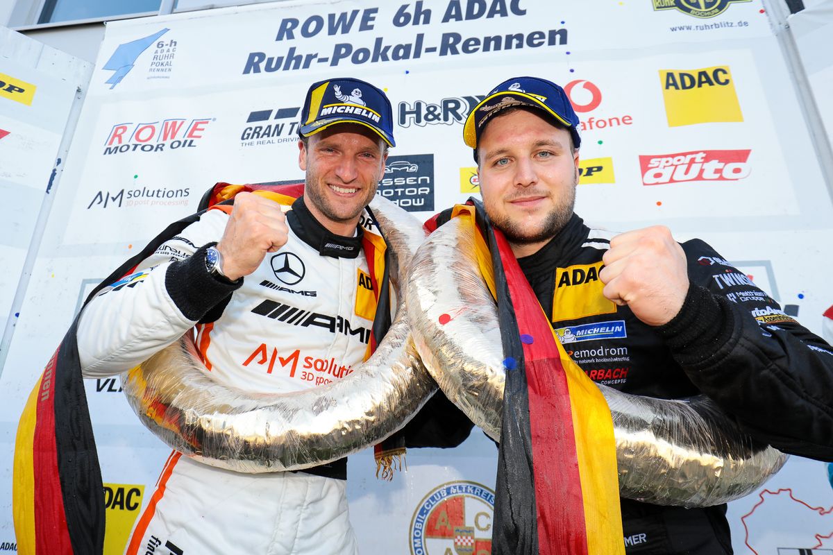 Black Falcon hat dem ROWE 6 Stunden ADAC Ruhr-Pokal-Rennen seinen Stempel aufgedrückt. Patrick Assenheimer und Maro Engel jubelten erst über die Pole-Position im nassen Zeittraining und schließlich über den zweiten Sieg in Folge für Assenheimer und sein Team – in einem Rennen, das bei strahlendem Sonnenschein seinen Höhepunkt fand. Im Ziel betrug der Vorsprung des Mercedes-AMG GT3 des Black Falcon Team AutoArena Motorsport 35,804 Sekunden vor dem Schwesterfahrzeug von Hubert Haupt, Adam Christodoulou und Luca Stolz. Platz drei ging an Vincent Kolb und Frank Stippler im Audi R8 LMS von Phoenix Racing.