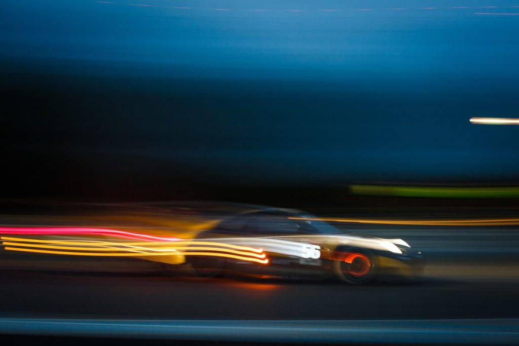 It’s race time: At more than 300 km/h, the Porsche 911 RSR hurtles down the D338 road from Le Mans towards Tours. In the two chicanes, which are closed off for everyday traffic and are a favourite spot for speed cameras, the ca. 515-hp GTE sports car takes the kerbs hard. Then, as fast as possible through the Mulsanne Corner and Indianapolis to the famous Arnage – the slowest passage of the 13.626-kilometre Circuit des 24 Heures. Exiting out of Arnage, the driver hits the throttle early, and now needs every ounce of courage and experience. In a few seconds, the Porsche Curves loom into sight. Five ultra-fast direction changes that are both loved and feared by drivers, and represent the most spectacular section of the French endurance classic.