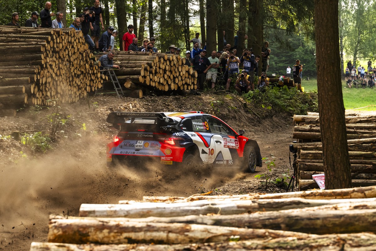 Mais, rapidement, l’équipage de la Toyota n°69 démontrait que, malgré le manque de préparation, ils savaient s’adapter. Ainsi, après une première matinée ou Andreas Mikkelsen profitait pleinement de sa position sur la route pour s’installer en tête, l’équipage de la Toyota, qui profitait de la boucle matinale pour parfaire les notes, revenait au contact et ne comptait qu’un peu plus d’une seconde sur la Hyundai leader, devançant de quelques dixièmes de seconde son coéquipier Elfyn Evans. Si Adrien Fourmaux limitait les dégâts au quatrième rang devant le surprenant Martin Sesks et Grégoire Munster, Thierry Neuville perdait beaucoup de temps en raison de l’ouverture de la route.