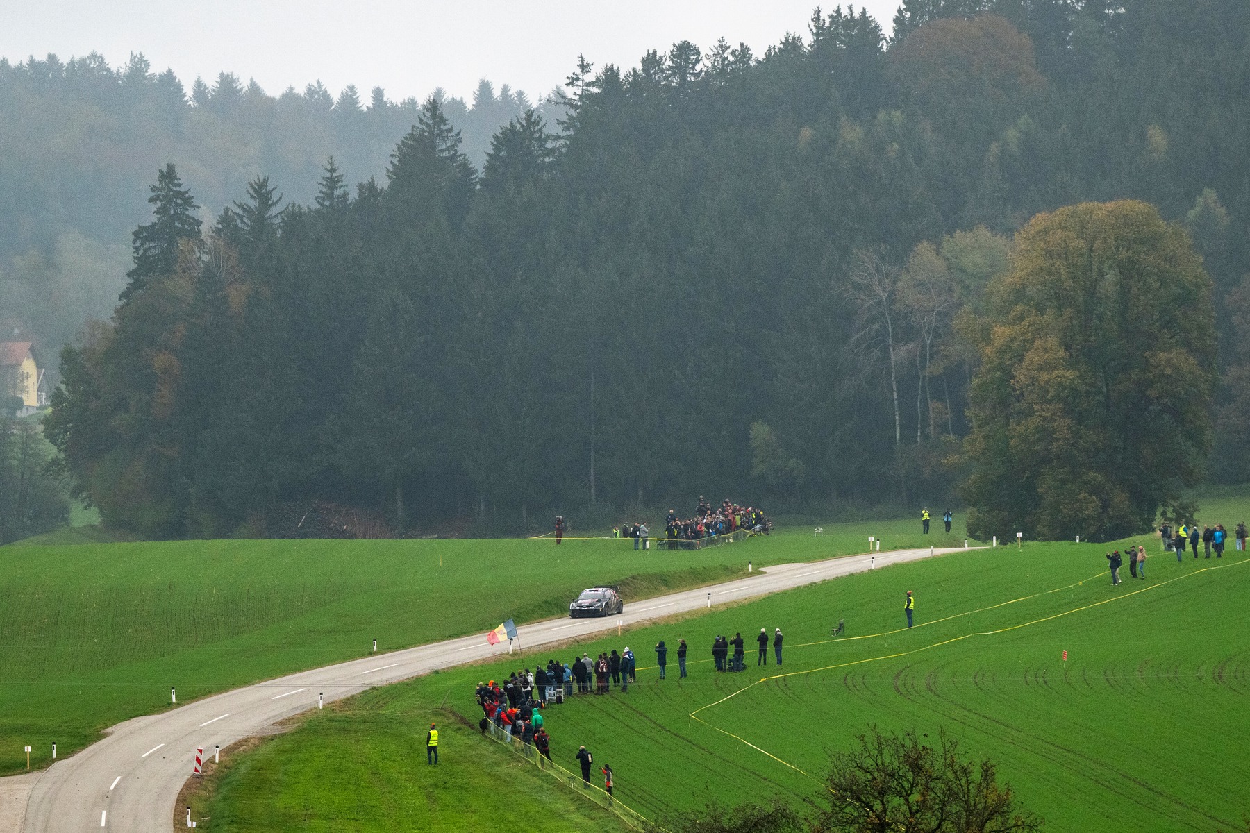 Mais, lors de la deuxième journée, disputée en Allemagne et Autriche, le leader du championnat partait à la faute sur des spéciales matinales extrêmement glissante en raison de la pluie. Heureusement pour l’équipage leader du championnat, la sortie de route ne leur faisait perdre qu’une trentaine de secondes, le temps de parvenir à sortir des champs d’herbe mouillée.
