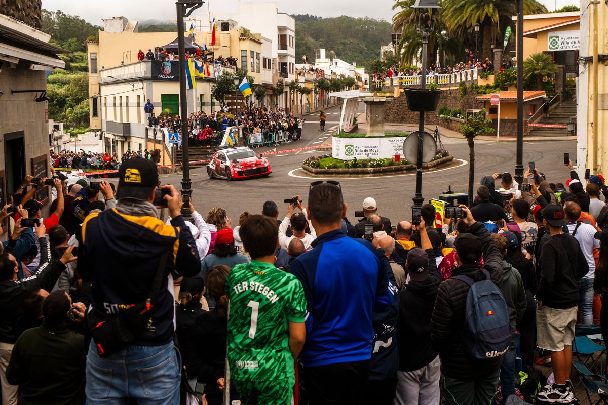 Le rallye s’est ouvert dans une ambiance électrique à Las Palmas, avec une super spéciale disputée dans l’enceinte du stade de Gran Canaria. Takamoto Katsuta a signé le meilleur temps, devançant de seulement 0,4 seconde Sami Pajari. Sur ce tracé court mais technique, les écarts sont restés infimes. Dani Sordo, de retour en Rally1, s’est illustré devant son public, tandis que Sébastien Ogier et Adrien Fourmaux se sont montrés prudents. Dès cette première mise en jambe, le décor était planté : un rallye serré, spectaculaire et très populaire.